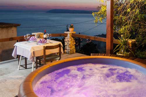 | House with Jacuzzi for rent is located in Tucepi in the village Simic, in a quiet hamlet above Tucepi in the foothills of the mountain slope, surrounded by olive groves, pine trees and Mediterranean plants. 1500 m away from the city and the sea and all the attractions, but at the same time, thanks to its location and beautiful location with plenty of sun with a garden, surrounded by beautiful nature provides privacy and a quiet holiday. The house consists of 2 levels, ground and first floors with garden 230 m2, has 2 double bedrooms + living room + kitchen + bathroom / toilet. + Balcony and Terrace with Whirlpool. From the balcony and terrace offers a beautiful view of the sea and islands of Brac and Hvar and on the other hand, the view of the mountain slope. If you decide to spend your holiday in Croatia and Tu?epi hope you choose one of our house and we are looking forward to your visit. |